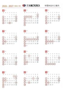 工場カレンダーのお知らせ