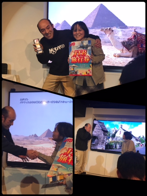 最後に残った1位旅行券と5位石鹸はくじ引きに当った2人がじゃんけんで決めます!