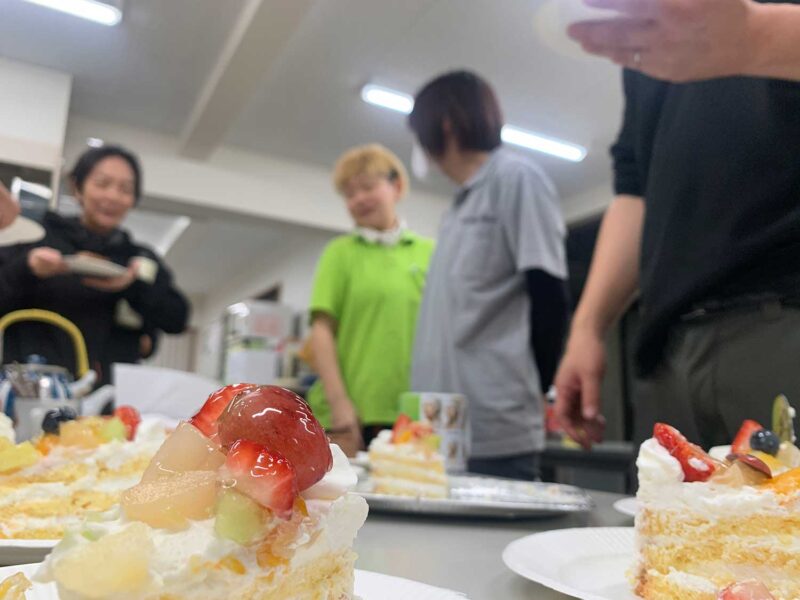 最近誕生日を迎えた人の名前が入ったケーキが登場し、みんなでお祝いします。