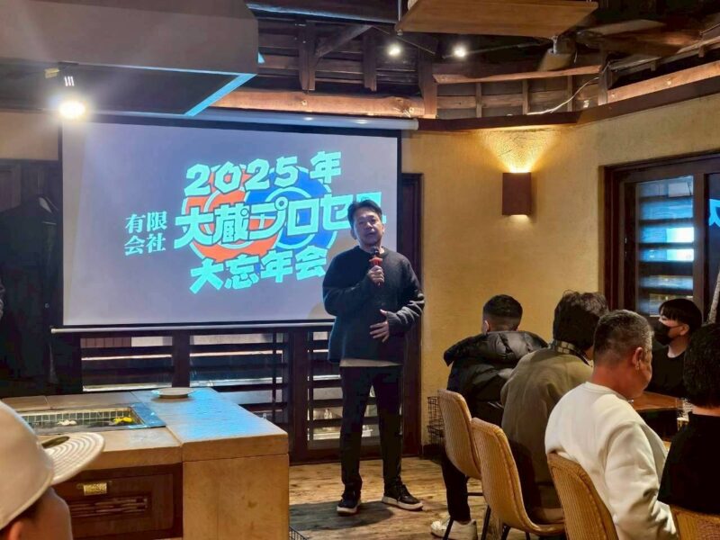 先日、大蔵プロセス主催の「大忘年会」を開催いたしました! 今回は社員やパートスタッフ、そして日頃からお世話になっている方々もお招きし、例年以上の大盛況となりました。一年の尽力をねぎらい、感謝の気持ちを分かち合う時間は、私たちにとって大切な福利厚生の一つです。会場は開始早々、温かい活気に包まれました。