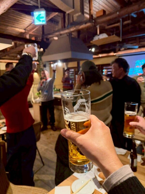続いて、一番の盛り上がりを見せたのが恒例の「じゃんけん大会」です! 用意された豪華景品を懸けて、参加者全員が本気モード。勝ち残るたびに大きな歓声が上がり、会場のボルテージは最高潮に達しました。見事景品を射止めた方も、惜しくも逃した方も、みんなで肩を組んで大盛り上がり。まさに会場全体が「一つになった」瞬間でした。