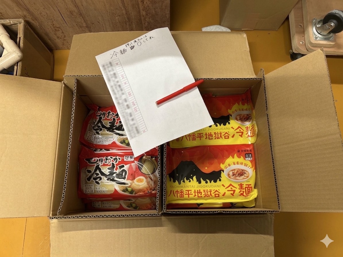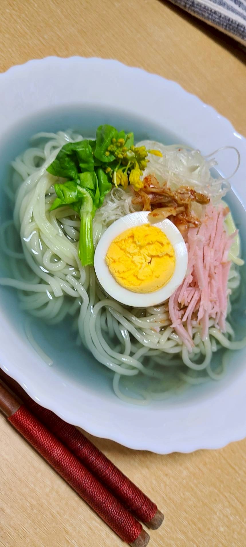 先日、社長から冷麺を頂きまして、皆それぞれ持ち帰り作って食べました。