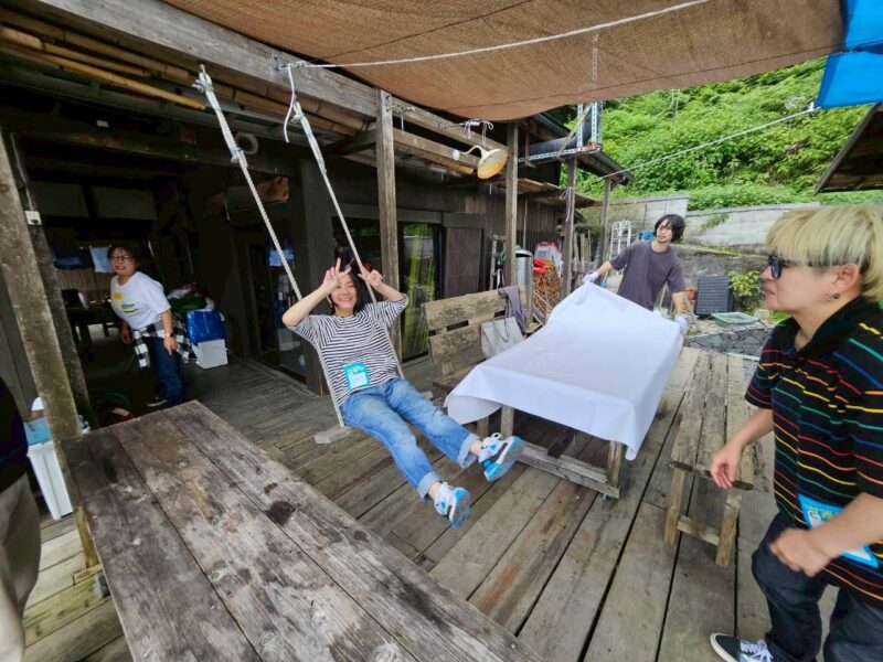 「もう少し右!」「そこそこー!」と周りの声援が飛び交い、笑い声が絶えません。