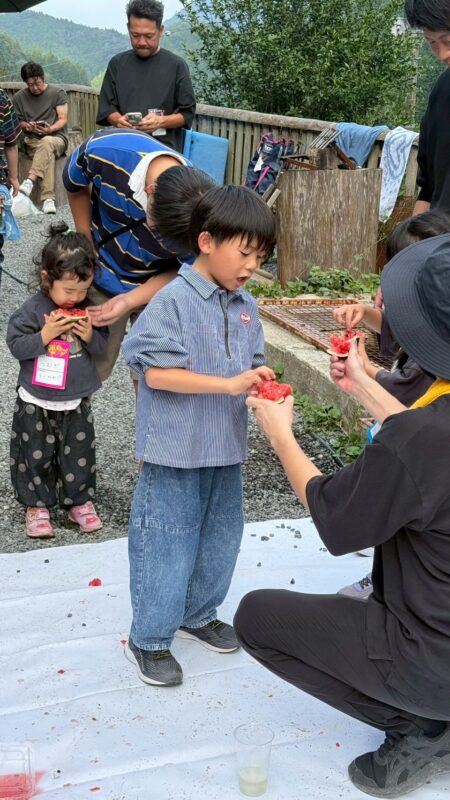 みんなで分け合って食べたスイカは甘くてとても美味しく、